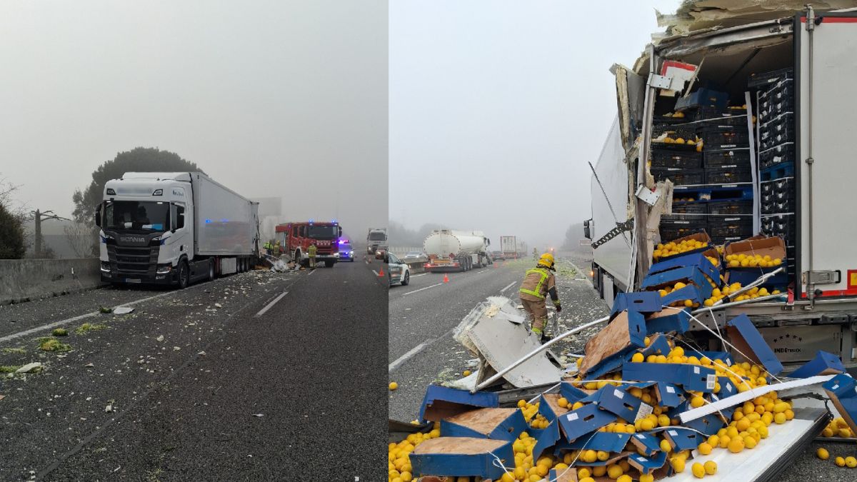 L’accident ha provocat que una gran quantitat de fruita i verdures que transportaven els camions quedés repartida per la carretera. En les imatges difoses pels serveis d’emergència es poden veure taronges i altres productes escampats per l’asfalt, així com part de l’estructura del remolc d’un dels vehicles completament malmesa.