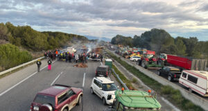 Desenes de tractors de pagesos tallen l’AP-7 a Pontós en protesta...