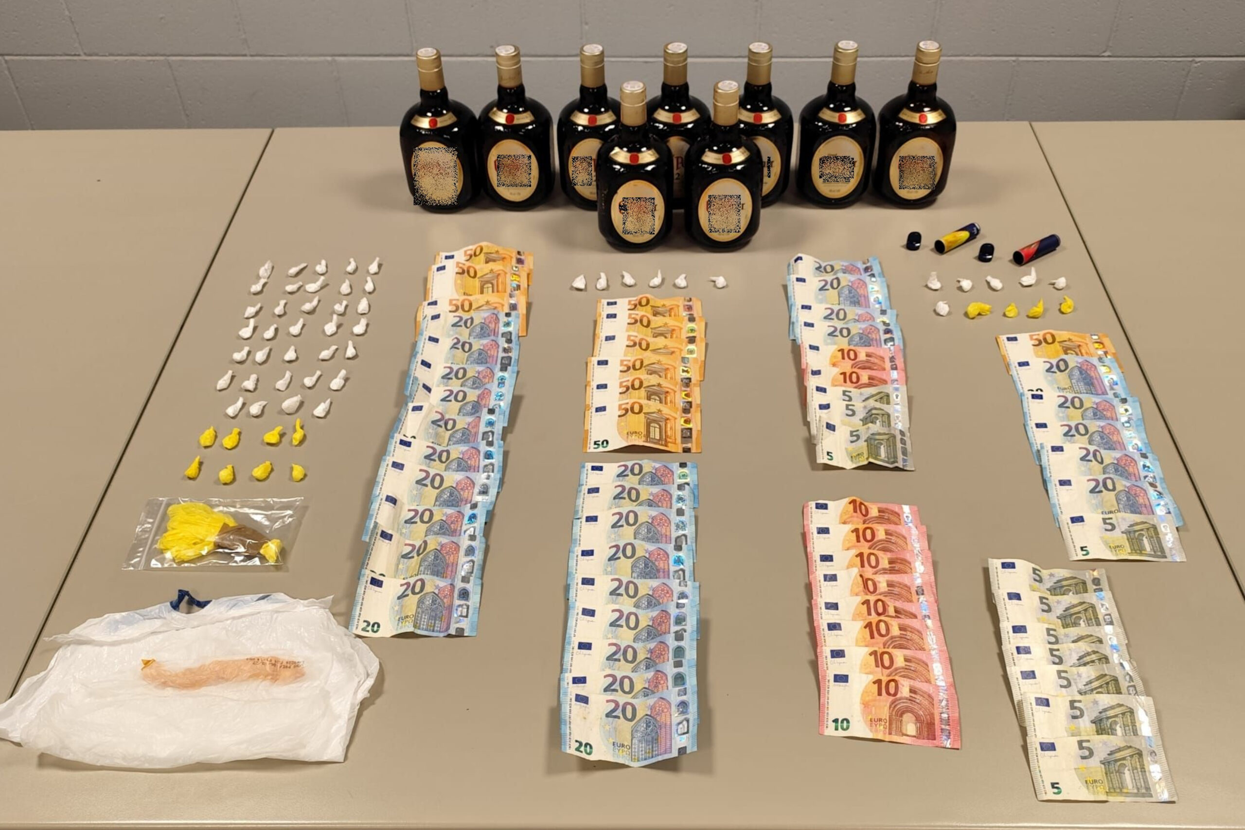 A més, a dins de la bossa de mà i a les butxaques dels dos sospitosos, els agents van localitzar 1.215 euros en bitllets fraccionats. Per això, van detenir la parella per un delicte contra la salut pública en la seva modalitat de tràfic de drogues.