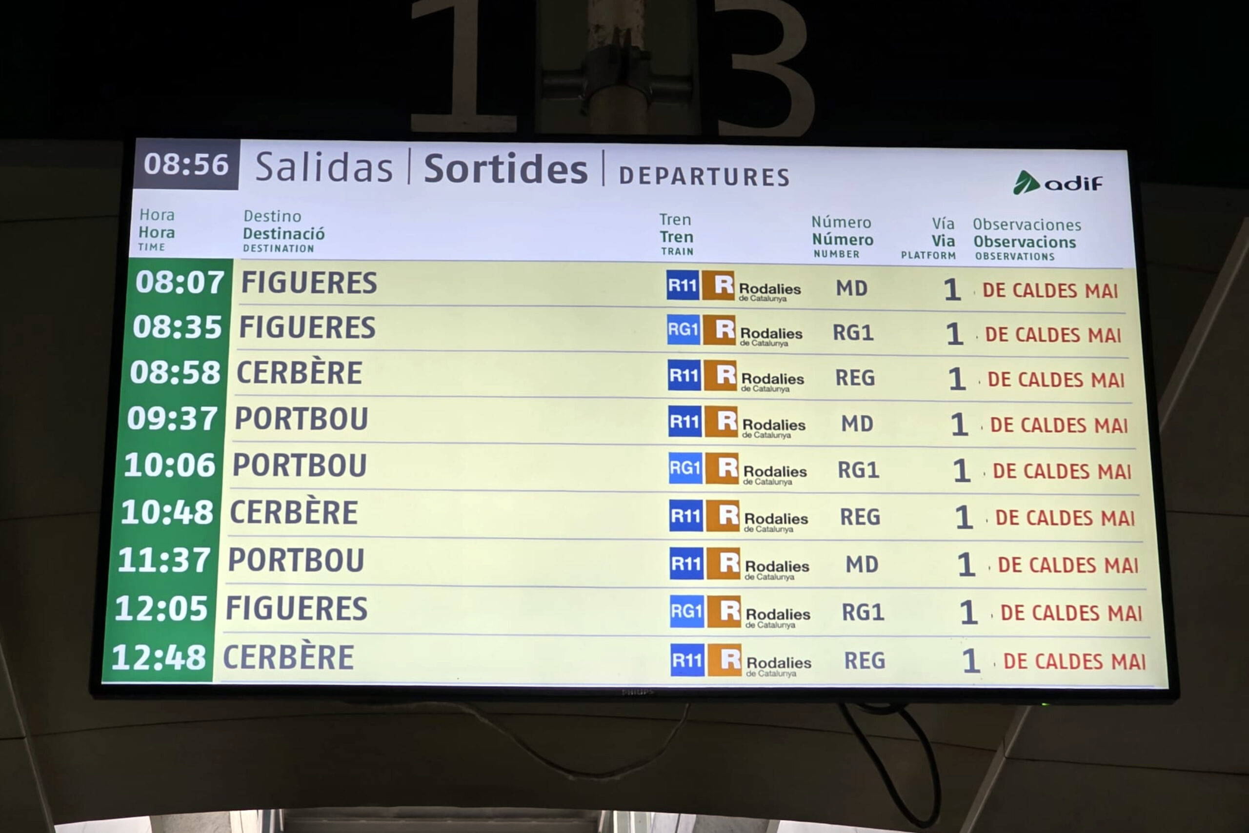 Confusió i informacions contradictòries a l’estació de Girona. En un principi, Renfe ha informat que les línies R11 i RG1 entre Portbou i Caldes de Malavella estaven tallades a causa d’una esllavissada. Com a alternativa, la companyia ha ofert autobusos per enllaçar totes les poblacions afectades per la manca de servei.