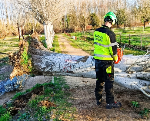 La Policia Local i les brigades municipals han estat vigilant al llarg de la nit passada i les primeres hores del matí per controlar les conseqüències de la ventada que ha afectat Salt i moltes altres àrees del país. Un dels incidents més crítics ha estat la caiguda d’un arbre al parc Monar, provocada per les ràfegues de vent que van assolar la Vila durant la matinada.
