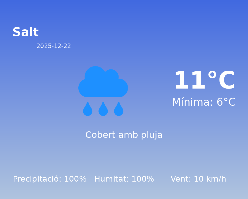 Avui, el municipi de Salt experimentarà un dia humit i bastant inestable en termes meteorològics. Cal que els residents es preparin adequadament per a les condicions climàtiques adverses.