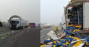 Així ha quedat l’AP-7 a Sils després del xoc entre dos...