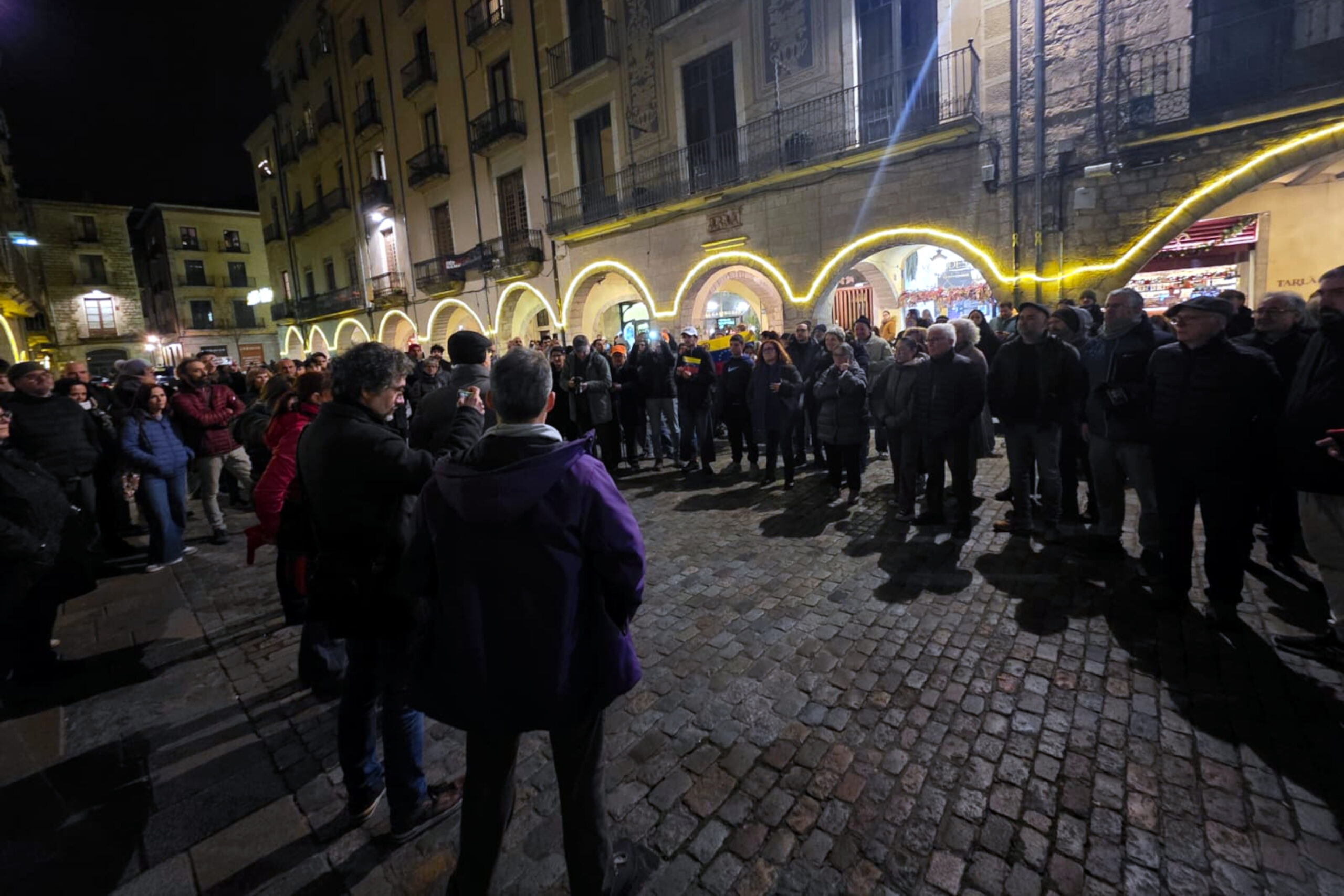ACN Girona – Un centenar de persones s’han concentrat a Girona contra l’atac dels EUA a Veneçuela. L’Assemblea Bolivariana de Girona ha convocat la protesta, que ha començat a les set de la tarda, a la plaça del Vi. Els manifestants han cridat proclames com “Fora els ianquis d’Amèrica Llatina”. La portaveu de l’Assemblea, Cristina Simó, ha reclamat que es “respecti la sobirania del poble veneçolà”, ja que “està amenaçada per l’imperialisme dels Estats Units”. “El que volen és el petroli, la resta són falses justificacions”, ha subratllat. L’alcalde de Girona, Lluc Salellas, i el diputat de la CUP al Parlament, Dani Cornellà, han participat en la mobilització. Després de llegir el manifest, la concentració s’ha dissolt sense incidents.