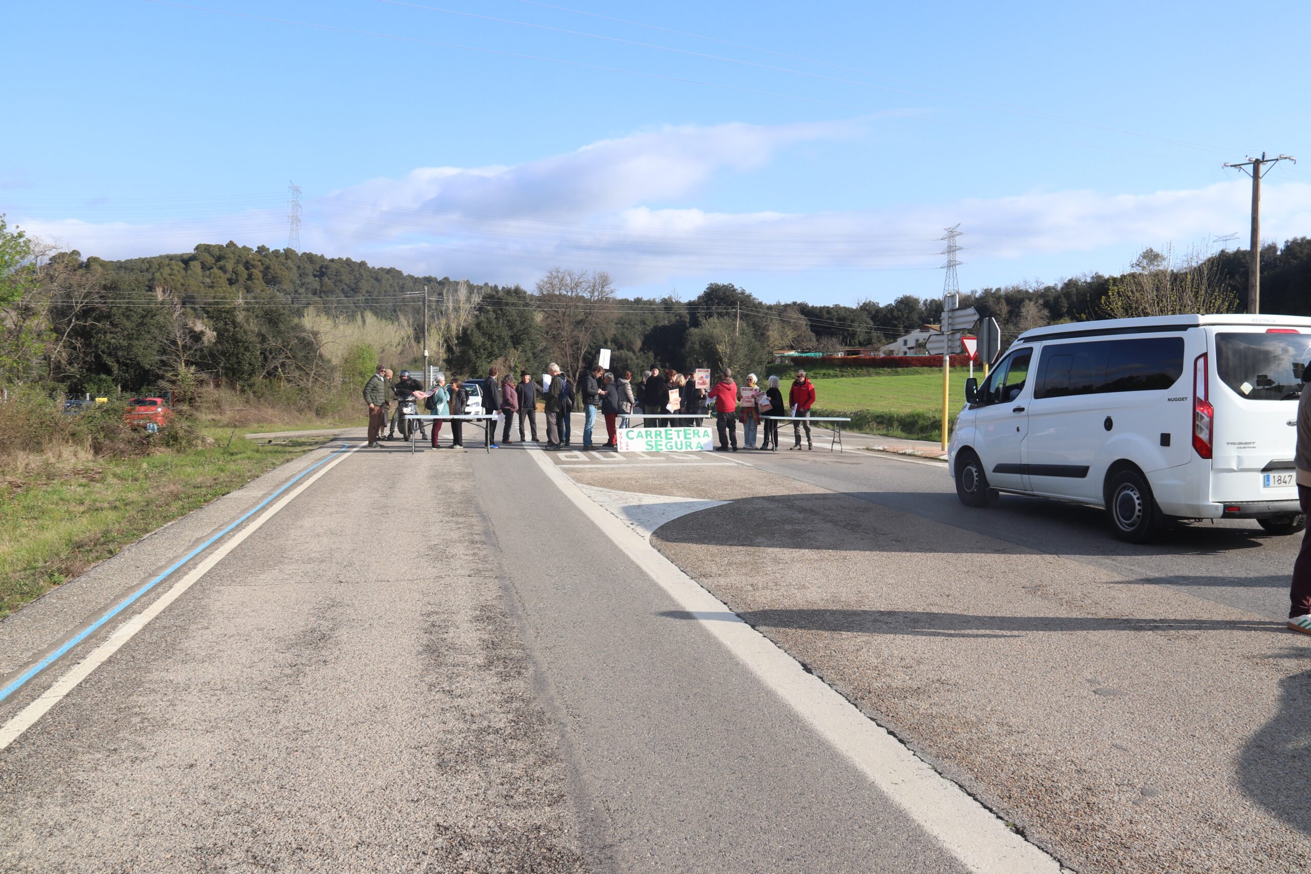 Veïns de la vall de la Llémena tallen la GI-531 en contra del projecte d’ampliació de la carretera